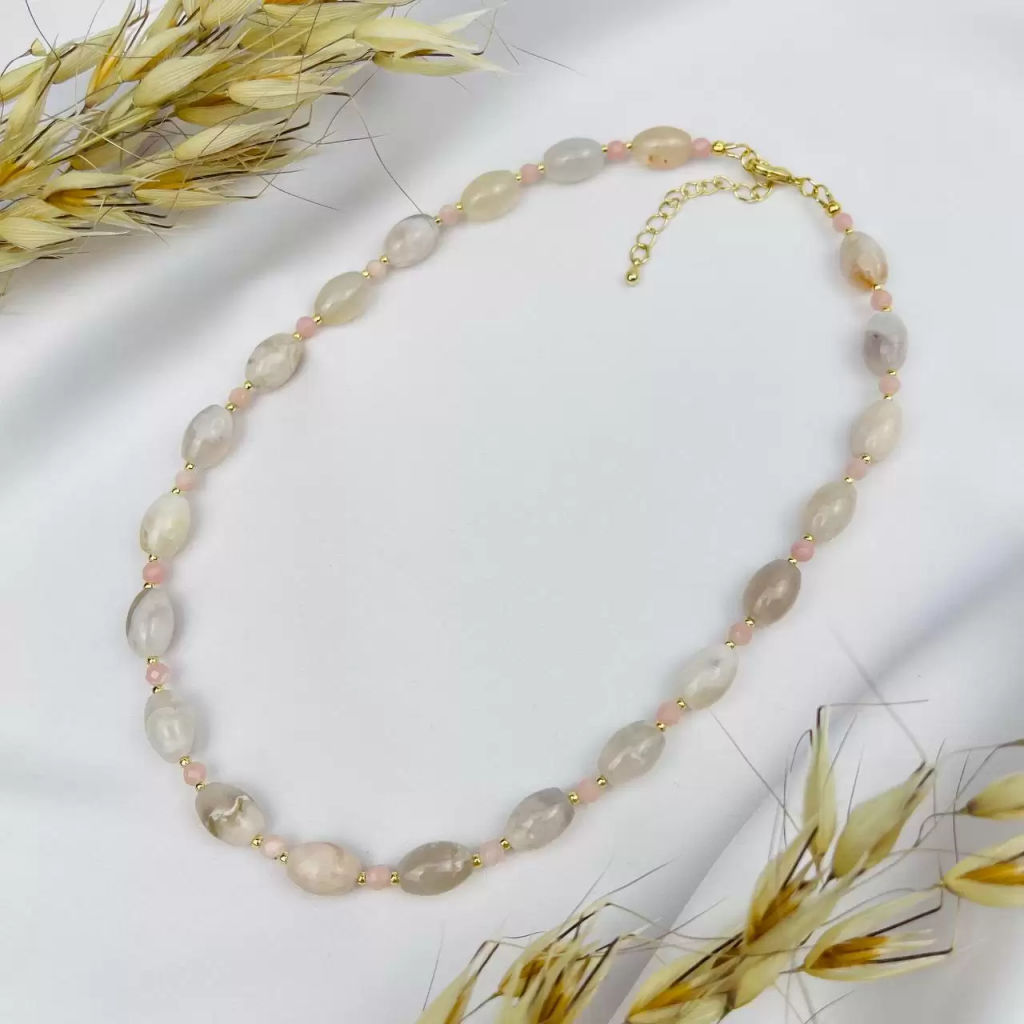 • Бусы из цветочного Агата и Кальцита 42 см +