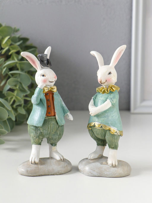 • Набор фигурок 2 шт. полистоун «Парочка зайчат в костюмах с жабо, бабочкой», 5.5×4×12.5 см