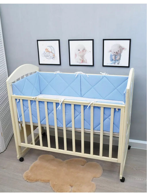 Бортики в кроватку идеально подойдут в детскую кроватку для новорожденного со спальным местом 60 на 120см. Высота бортиков 30см. Бортики в детскую кроватку становятся не просто украшением, но и символом заботы о безопасности и комфорте ребенка Защитные бортики безопасные и плоские, упругие и плотные, занимают мало места в детской кроватке, не провисают. Бортики в детскую кроватку стильные и лаконичные, с их помощью кровать детская преобразится в уютный уголок. Бортики для кроватки защитят малыша от ушибов. В качестве завязок используется белая прочная тесьма. Завязки прочные и отлично фиксируют бортик в кроватке. Длина одной завязки 30 см. Ленты аккуратно обработаны по краю. Каждый бортик имеет завязки снизу и сверху по углам и в середине, поэтому они плотно фиксируются в детской кровати, что очень удобно при использовании. Количество завязок на бортиках 3*2шт сверху и 2шт снизу. Материал 100% хлопок. Матовая мягкая и дышащая ткань, не вызывает аллергию и отлично пропускает воздух. Наполнитель Экофайбер простеган с тканью по всей площади изделия. После многочисленных стирок стеганые бортики сохраняют все свои свойства, наполнитель не вылезает через ткань и не провисает со временем. Для стирки рекомендуем бережный режим 30 градусов, отжим 400 оборотов, а также кондиционер для детского постельного белья. Фактический оттенок изделия может незначительно отличаться от представленного на сайте, т к у разных мониторов разная цветопередача. Подарите своему малышу уют и безопасность с бортиками в кроватку. Это идеальное решение для будущих мам и незаменимый подарок как для мальчика, так и для девочки.