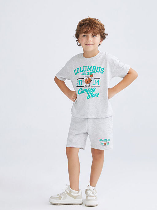 Bisiklet Yaka Bask?l? Erkek ?ocuk Ti??rt ve ?ort 2li