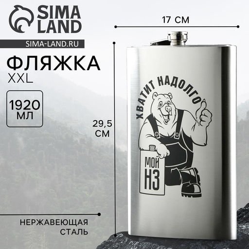 Фляжка ГИГАНТ «Хватит надолго», 1920 мл, серебристая