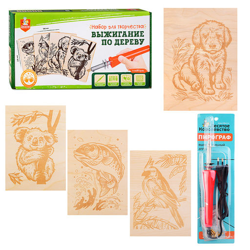 • Выжигание. Набор для выжигания по дереву (аппарат с насадками, доски 5 шт)