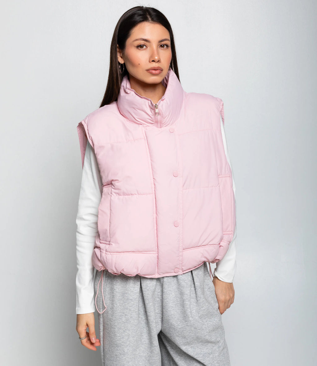 Жилет это одежда, которая подчеркивает привлекательность каждой женщины. Этот жилет выполнен из ткани, состоящей на 100% полиэстер. Короткий стёганый жилет без рукавов, выполнен из гладкой ветронепроницаемой ткани с мягкой, объёмной набивкой внутри, создающей пухлую, приподнятую структуру. Модель с высоким горлом-стойкой, которое плотно обрамляет шею и дополнительно утепляет верхнюю часть корпуса; застёжка спереди скрытая планкой с крупными обтянутыми пуговицами, обеспечивающими цельный визуальный ряд. Фасон прямой и укороченный, с завышенной линией низа, где расположен регулируемый шнурок со стопперами, позволяющий зафиксировать посадку по талии и придать силуэту более собранный вид. Боковые входные карманы интегрированы в швы и усилены прострочкой, обеспечивают практичность без нарушения объёма! Рост 164, 83-61-89. Вы можете заказать онлайн презентацию на интересующие Вас модели. Наши менеджеры свяжутся с Вами и проведут индивидуальную видеотрансляцию, помогут составить заказ и ответят на Ваши вопросы. -- Характеристики -- Цвет: розовый Пол: Женский Страна производитель: Китай Сезон: Демисезон Материал: Полиэстер