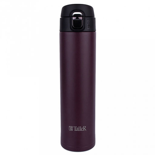 Термос из нержавеющей стали с узкой горловиной 0,5л "Брис" h25см, горло д5см, клапан, герметичная силиконовая пробка, кнопка блокировки, покрытие - фиолетовое, матовое, "TalleR" (Китай)