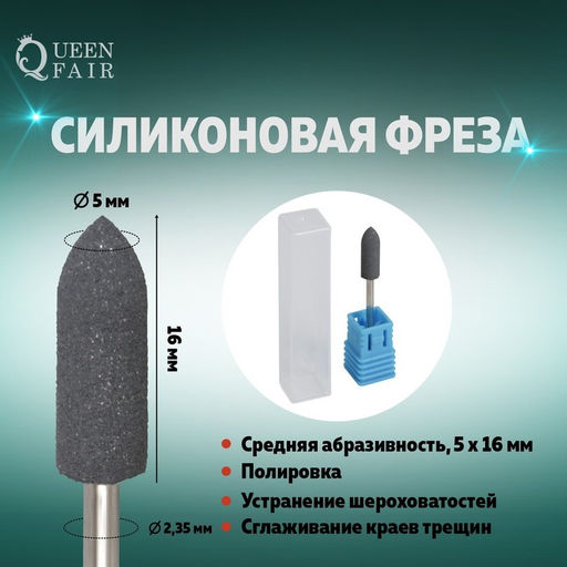 • Цена за 2 шт. Фреза силиконовая для полировки, средняя, 5 × 16 мм, в пластиковом футляре, цвет чёрный