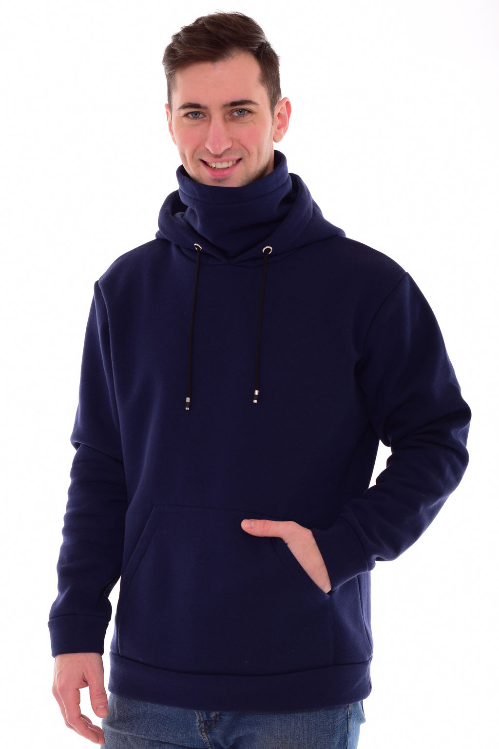 Оригинальная мужская толстовка из футера премиум качества. Капюшон со шнуром, люверсами и горловина стойка сзади на резинке. Рукав длинный на манжете. Низ - пояс. Удобный карман -кенгуру . Длина изделия по спинке: 46 р - 69 см, 48 р - 70 см, 50 р. - 71 см, 52 р. - 72 см, 54 р - 73 см, 56 р - 74 см, 58 р - 75 см, 60 р - 76 см. Подкладка в горловине-стойке. Застежки нет. Плотность ткани: плотная. Карман-кенгуру. Резинка в поясе шорт. Декор: капюшон стягивается шнуром через люверсы. Уход: деликатная стирка в машине при 30 градусах отдельно от других вещей.