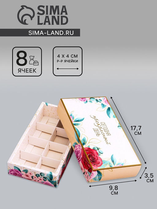 Коробка складная для 8 конфет без окна «Прекрасного настроения», 9.8×17.7×3.5 см