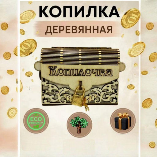 Копилка для денег "Копилочка" выполнена из натурального дерева в виде сундучка. На передней части копилки сейфа есть функционирующий замок золотого цвета. В комплекте присутствуют два ключа такого же цвета. Русская копилка украшена красивым орнаментом внизу изделия под гравировкой. Деревянная копилка для денег была выполнена на высокоточном оборудовании с применением шлифовки. Такая копилка, альтернатива свинье копилке, точно станет отличным подарком для детей, взрослых, родных, друзей и знакомых. Копилка на 365 дней - это важный предмет декора и хороший подарок, который не только украсит интерьер, но и будет очень полезен в повседневной жизни. Денежная копилка поможет родителям обучить ребёнка хранению денег, обращению с деньгами и экономии. Взрослым копилка поможет накопить на мечту, на год, на море, на отпуск, на квартиру. В копилку из дерева легко поместятся монет и купюры. Качественно выполненная гравировка обеспечивает чёткость всех деталей дизайна копилки банкомата. Коробка для денег выполнена из экологически чистых материалов и поэтому абсолютно безопасна.