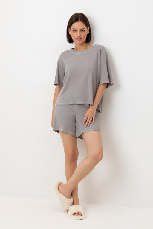 Комплект из объемного трикотажа с добавлением эластичных волокон. Свободный силуэт и мягкий пояс обеспечат комфорт во время сна и отдыха.. Состав: 95% хлопок, 5% спандекс