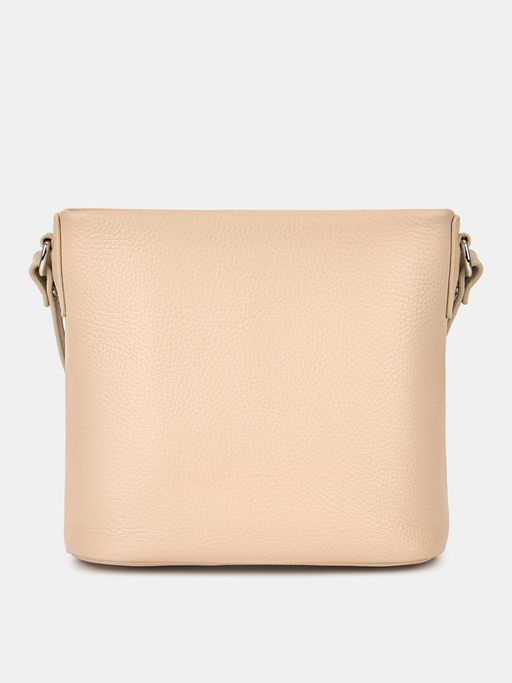Небольшая женская сумка из натуральной кожи бежевого цвета с выраженной зернистой фактурой. Качественная кожа прочная и долговечная, сумка способна прослужить не один сезон.