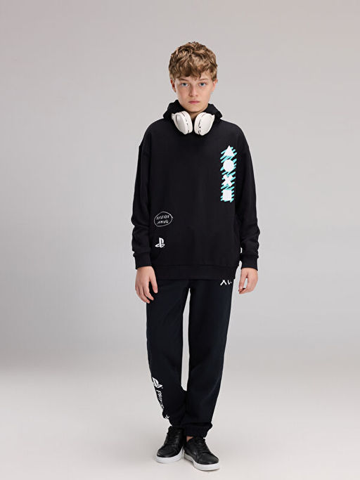 Kap??onlu PlayStation Bask?l? Erkek ?ocuk Sweatshirt