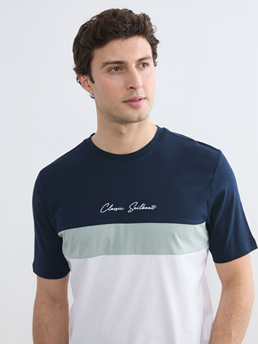 • Bisiklet Yaka Renk Bloklu Penye Erkek Ti??rt