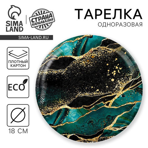 • Цена за 10 шт. Тарелка одноразовая бумажная «Мрамор», 18 см