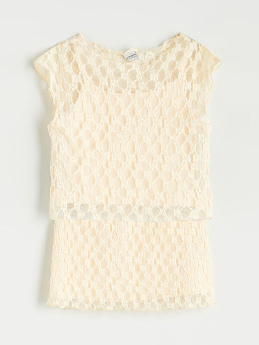• Bisiklet Yaka Dantel Detayl? K?z ?ocuk Bluz ve Etek