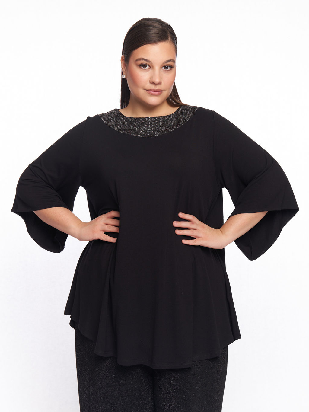 Нарядная туника больших размеров черная с глиттером
