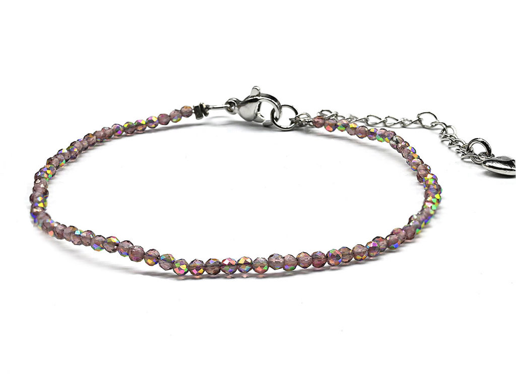 • Браслет из циркона шарик граненый 2мм цвет сиреневый хамелеон, 19см