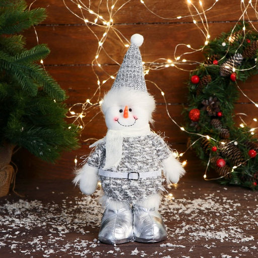 • Мягкая игрушка "Снеговик в колпаке и шарфике" 16х30 см, бело-серый