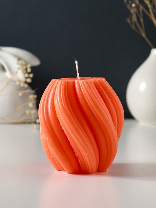 Свеча - цилиндр 9×8 см, 220 г, с нарезкой, персик