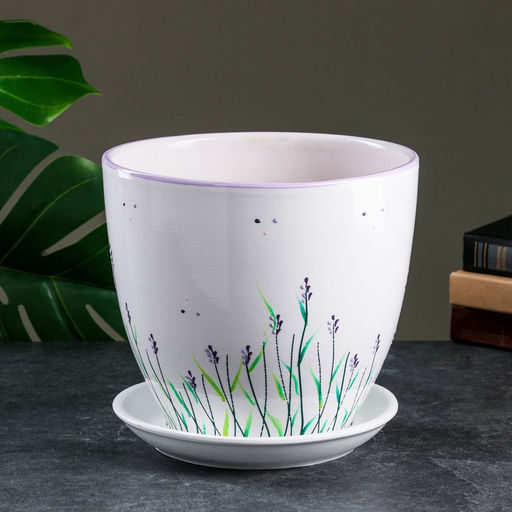 Горшок для цветов «Лаванда», 5 л, d=23 см, h=21 см, керамика, с поддоном, белый
