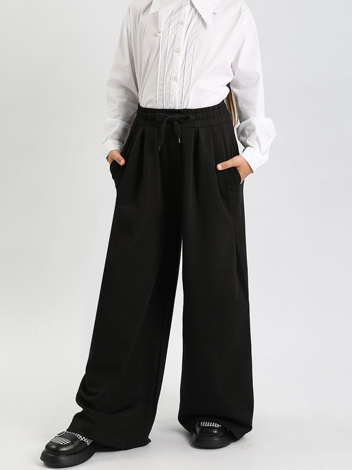 Брюки-палаццо для девочки Соль&Перец в стиле спорт-шик. Однотонные брюки на широкой резинке с кулиской и боковыми карманами выполнены из трикотажа - футер 2-х нитка.