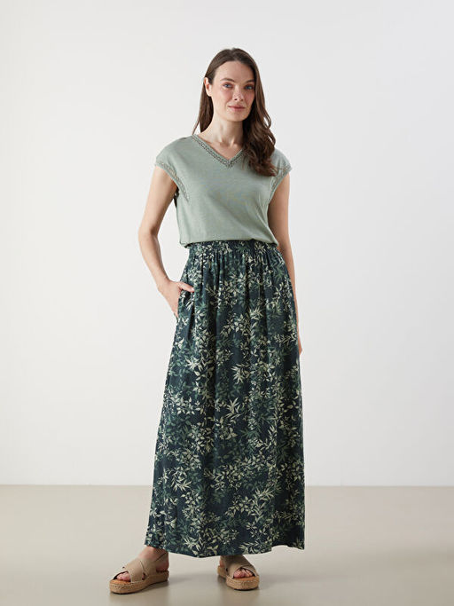 Beli Lastikli ?i?ekli Kad?n Etek