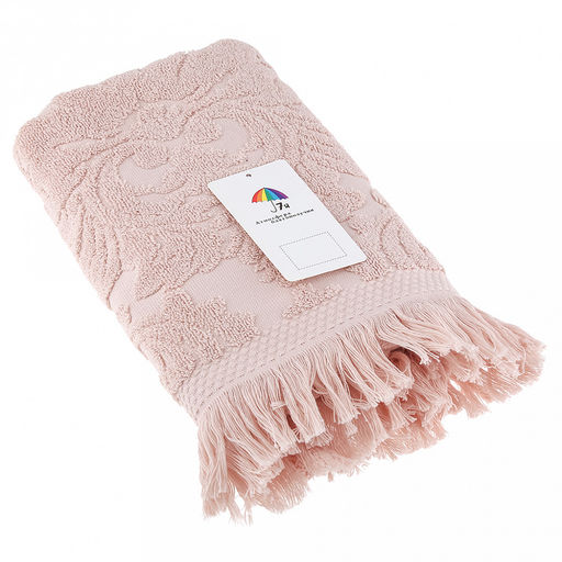 • Полотенце махровое "Вензель" 50х90см, хлопок 100%, с бахромой, пудровый (Китай)