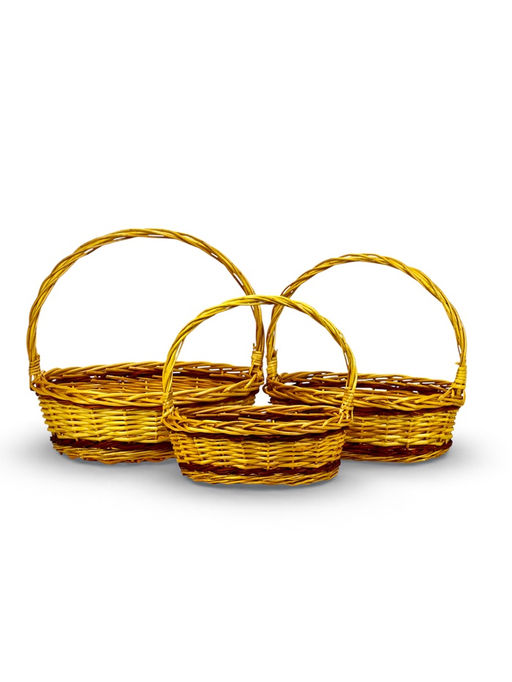 Набор овальных плетёных корзин Vento, коричневый, 3 шт. — комплект из трёх изделий для хранения и декора. Корзины из натуральной ивы в благородном коричневом оттенке помогают организовать пространство и добавить интерьеру природной глубины.Экологичный материал: корзины выполнены из отборной ивовой лозы — прочного, гибкого и долговечного природного сырья.Комплект из трёх штук: корзины разных размеров можно собрать в единую композицию или использовать по отдельности в разных комнатах.Насыщенный оттенок: коричневый цвет придаёт интерьеру благородство и хорошо сочетается с натуральным деревом, зеленью растений и тёплым текстилем.Идея для презента: набор служит эффектной упаковкой для подарка и остаётся полезным предметом быта после праздника.Корзины подходят для хранения повседневных вещей, аксессуаров или текстиля. Плетёная фактура из ивы создаёт атмосферу уюта и тепла. Набор: Да. Форма: Овальная. Длина, см: 31. Длина, см: 37. Длина, см: 43. Ширина, см: 24. Ширина, см: 29. Ширина, см: 38. Высота, см: 28. Высота, см: 31. Высота, см: 35. В наборе, шт.: 3. Высота без ручки, см: 12. Высота без ручки, см: 13. Высота без ручки, см: 15. Высота с ручкой, см: 28. Высота с ручкой, см: 31. Высота с ручкой, см: 35. Крышка: Нет. Дизайн: Однотонный. Бесплатная доставка: Да. Примечание: Ручная работа. Рисунок и размеры могут незначительно отличаться.. Примечание: Изготовлено из натуральных материалов.. Примечание: На изделии могут присутствовать подтеки краски..