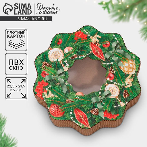 • Коробка новогодняя подарочная «Венок», 21×22×5 см