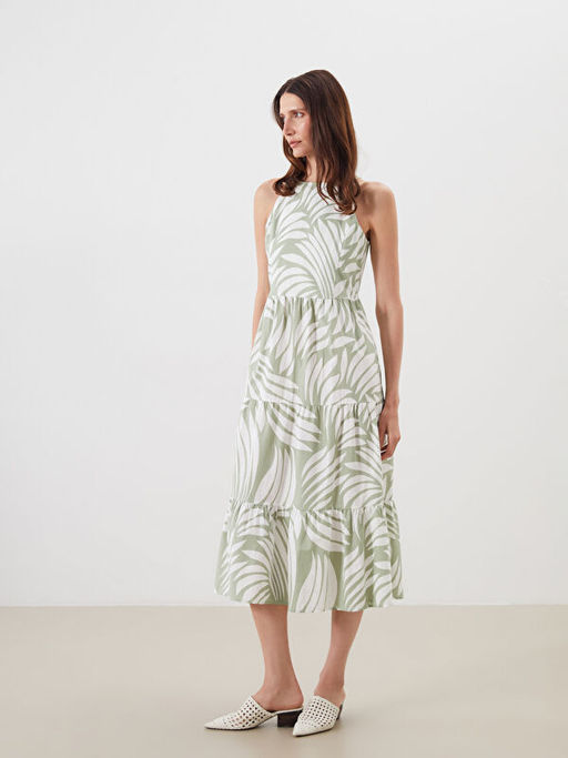 • Halter Yaka Desenli Katkat Elbise