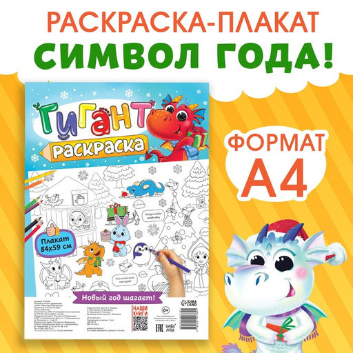 • Цена за 2 шт. Раскраска-гигант «Змейка», А4