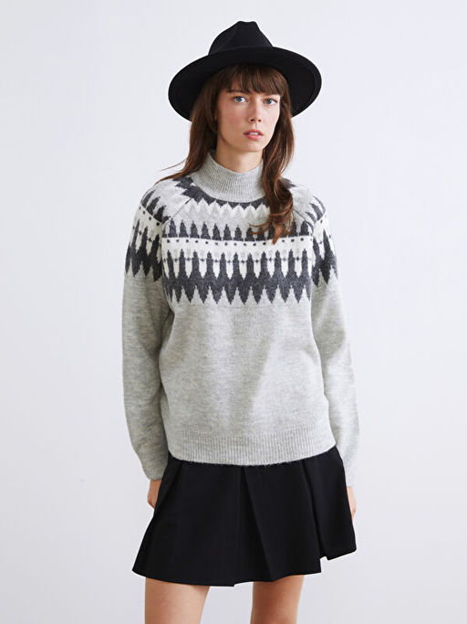 • Yar?m Bal?k?? Yaka Desenli Kad?n Triko Kazak