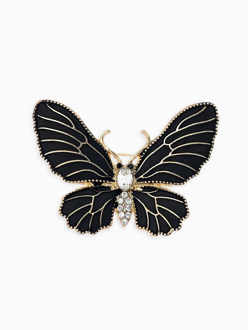 • Брошь "Бабочка" матовая, в жилки, цвет чёрный в золоте