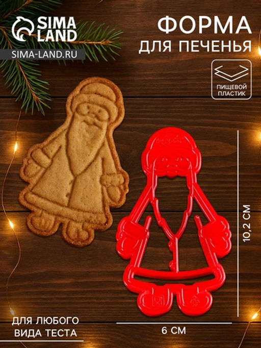 • Форма для печенья новогодняя «Дед Мороз», вырубка, штамп, пластик, 10.2×6×1.4 см, красная