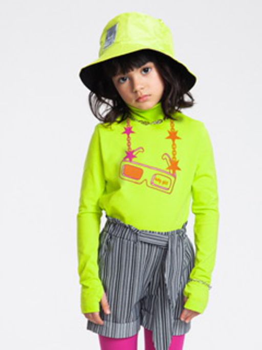 Водолазка прилегающего кроя, высокий воротник , длинные рукава с отверстием для большого пальца. Принт на передней половинке. Состав:92% хлопок, 8% лайкра