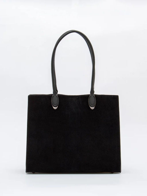 Стильная модель-тоут, выполнена из замши. Дополнена серебристой фурнитурой. Данная модель закрывается на молнию. Каркас жесткий. Носится в руке или на плече за встроенные удлиненные ручки.