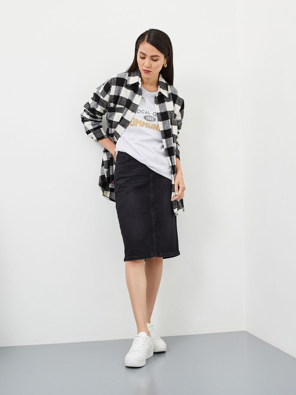 Джинсовая юбка силуэта "карандаш" из хлопкового денима с добавлением эластана с эффектом потертости в синих оттенках. Модель с карманами с металлическими заклепками спереди и накладными карманами сзади с фигурными строчками контрастного цвета в синих оттенках юбки. Сзади в шве шлица для удобного шага. Юбка джинсовая с высокой посадкой добавляет образу женственности, элегантности и привлекательности. С такой юбкой можно создать разные образы и при этом всегда выглядеть безупречно. На талии есть шлёвки для ремня, патч из эко кожи на поясе "Mossmore". Широкая линейка размеров поможет подобрать нужный размер по фигуре. Застёжка на молнию и металлическую пуговицу. Размер на модели 27, рост 175 см.­