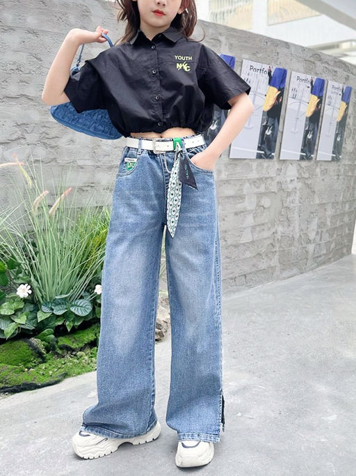 Джинсы для девочки Lovey.CC, на широком, эластичном поясе, без молнии и пуговиц, для максимального комфорта в носке. Брючины свободного кроя по всей длине. Ремень в комплект не входит.
