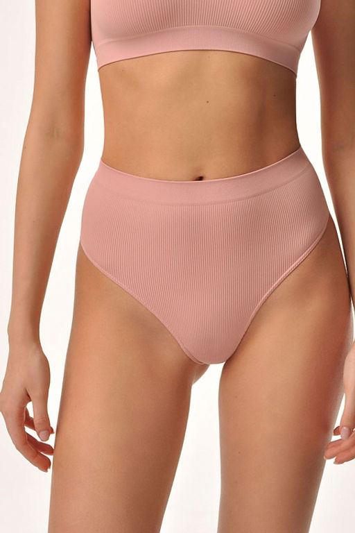 Трусы стринги с высокой посадкой из мягкой эластичной микрофибры в рубчик с гигиенической ластовицей. Широкая резинка в рубчик обеспечивает удобную посадку и не перетягивает фигуру. Специальная бесшовная технология позволяет изделию идеально облегать тело. Не мнется и не требует глажения.­