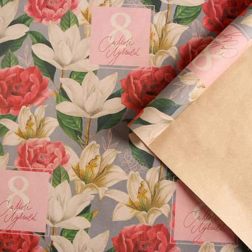 • Цена за 10 шт. Бумага упаковочная крафтовая «Цветы на 8 марта», 50 х 70 см