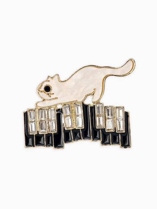 • Брошь перламутровый "Котёнок" с пианино, цвет чёрно-белый в золоте