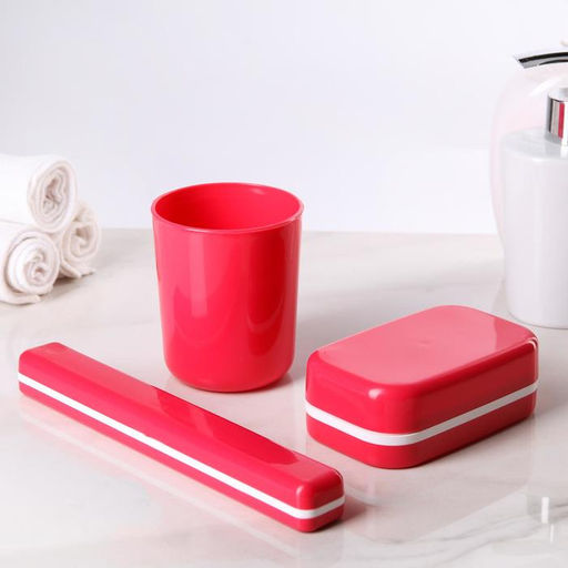• Дорожный набор, 3 предмета, мыльница, стакан, футляр для зубной щётки, МИКС