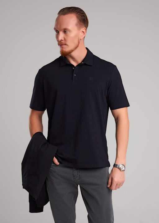 Футболка поло прямого кроя из трикотажного плотного, гладкого полотна. Отложной воротник. Короткие рукава. Застежка на кнопки. Изделие дополнено имиджевым принтом. Отличный вариант для встреч с друзьями. 67%Хлопок29%ПЭ 4%Эластан