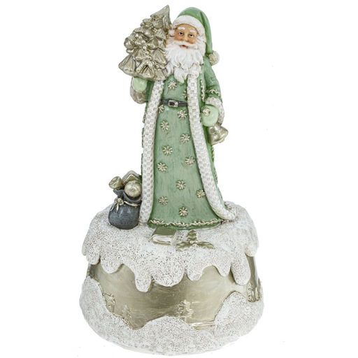 Декоративная фигурка "Дед Мороз" с музыкальным механизмом изготовленна из качественного полистоуна и выполнена в стильной зелено-золотой цветовой гамме, что придает ей особый шарм и элегантность. Представлена в двух вариантах.