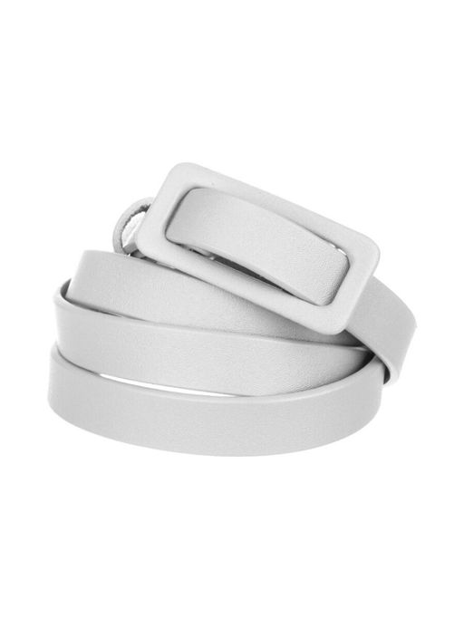 Ремень белого цвета из высококачественной кожи, с пряжкой в цвет изделия подчеркнет достоинства фигуры и станет ключевым акцентом всего образа в целом. Узкие модели, призванны подчеркнуть тонкую талию обладательницы. Прекрасно комбинируются с жакетами, рубашками свободного кроя, платьями, кардиганами. Очень эффектно такой ремень смотрится с платьями из легких тканей. Узкий пояс подойдет почти к любой фигуре.