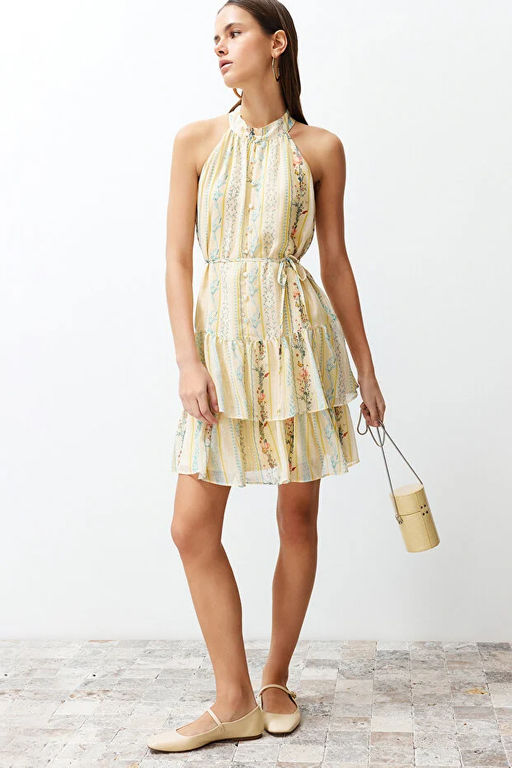 Kadın Elbise HIZLI TESLİMAT Product stamp Ürünleri İncele Vanilya Saten Mary Jane Bantlı Yuvarlak Burun Kadın Babet TAKAW25BE00005Açık Turuncu Kuşaklı Çiçekli Düz Kesim Kuşaklı Mini Dokuma Elbise TWOSS22EL00666 Tamamlayıcı Ürünler Sarı Çiçek Desenli A