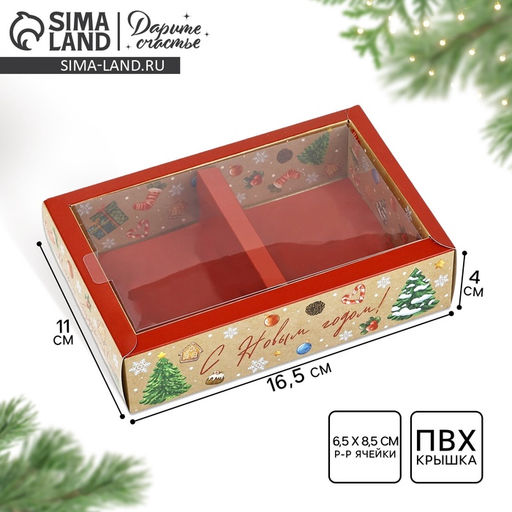 Цена за 5 шт. Коробка складная с пластиковой крышкой «С Новым годом!», 16.5×11×4 см