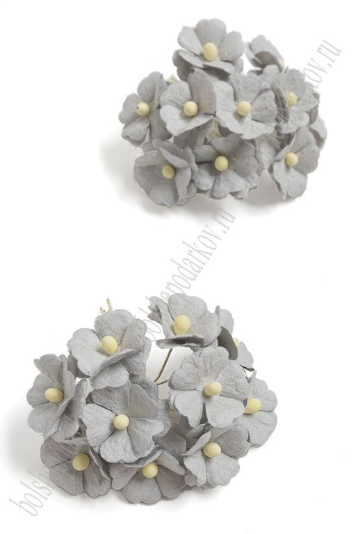 • Тайские бумажные цветочки 2 см на веточке (20 шт) S11/Silver Grey, серый