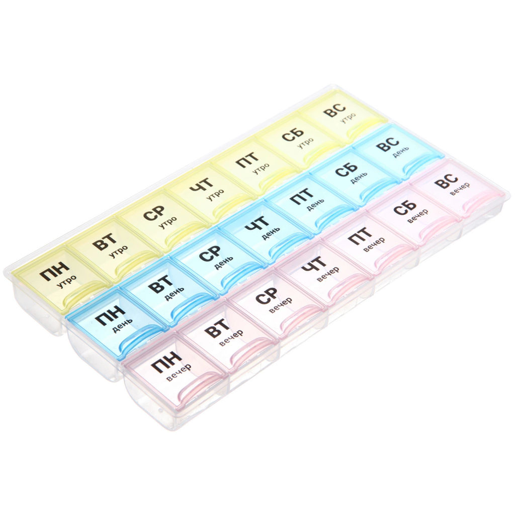 • Цена за 3 шт. Таблетница - органайзер 21 ячейка "Три недельки", цвет как на фото, 21,5*12*2,3см (пакет с подвесом)