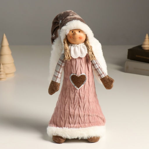 Интерьерная текстильная кукла Ангелочек Марфуша в розовом вязаном платье с сердечком, 35 см