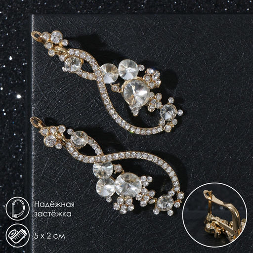 Позвольте вашим ушкам заговорить языком искрящегося волшебства с золотыми серьгами, украшенными ослепительными белыми стразами. Яркое сочетание чистого золота и прозрачных стеклянных кристаллов создаёт впечатление настоящего звёздного дождя, струящегося по вашей шее.Четыре причины полюбить эти украшения:Красивые большие свисающие элементы делают образ динамичным и элегантным одновременно.Металлическая основа покрывается стойким золотистым напылением, поддерживающим оригинальную идею аксессуара.Особый механизм фиксации английской застёжкой гарантирует прочность посадки и абсолютный комфорт при носке.Продуманная композиция белых кристаллов дарит яркий и соблазнительный блеск, манящий издалека.Благодаря стильному внешнему виду и потрясающему качеству изготовления, серьги превосходно подойдут для создания завершенного свадебного ансамбля, идеального компаньона на званых ужинах и безупречного дополнения повседневной моды. Набор: Нет. Для кого: Для женщины. Длина, см: 6. Тематика праздника: Свадьба. Вставка/Подвеска: Стекло. Вставка/Подвеска: Стразы. Вид застёжки: Английская застёжка. Тематика: Кристаллы. Висячие: Да. Бесплатная доставка: Да. Размеры товара: 2/1/5.